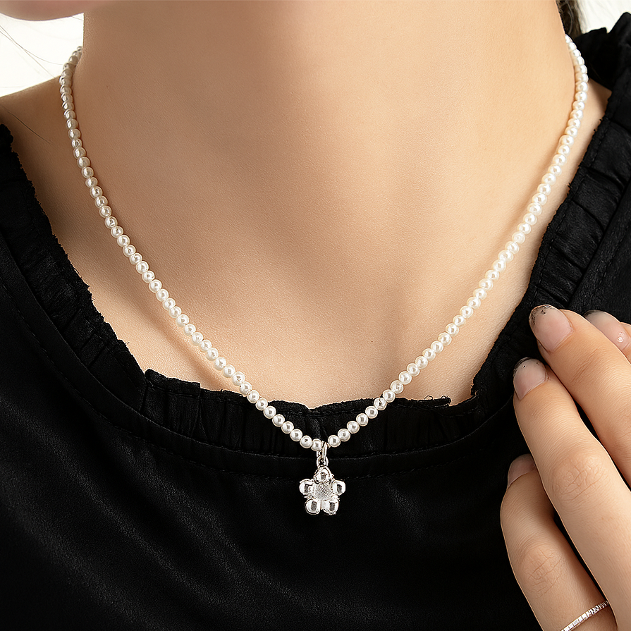 Flora combina una delicada hilera de perlas con un encantador dije en forma de flor, elaborado en Plata 925 con detalles sutiles que evocan pureza, dulzura y elegancia clásica. Es una joya romántica y luminosa, ideal para quienes buscan un estilo suave pero lleno de intención y belleza natural.