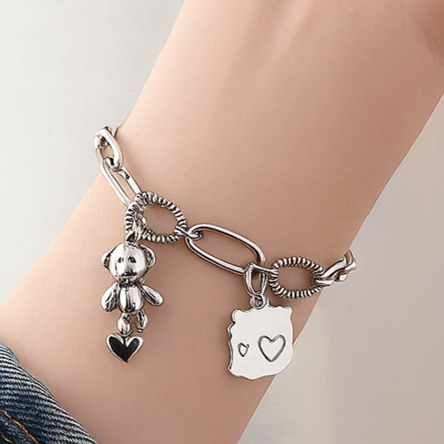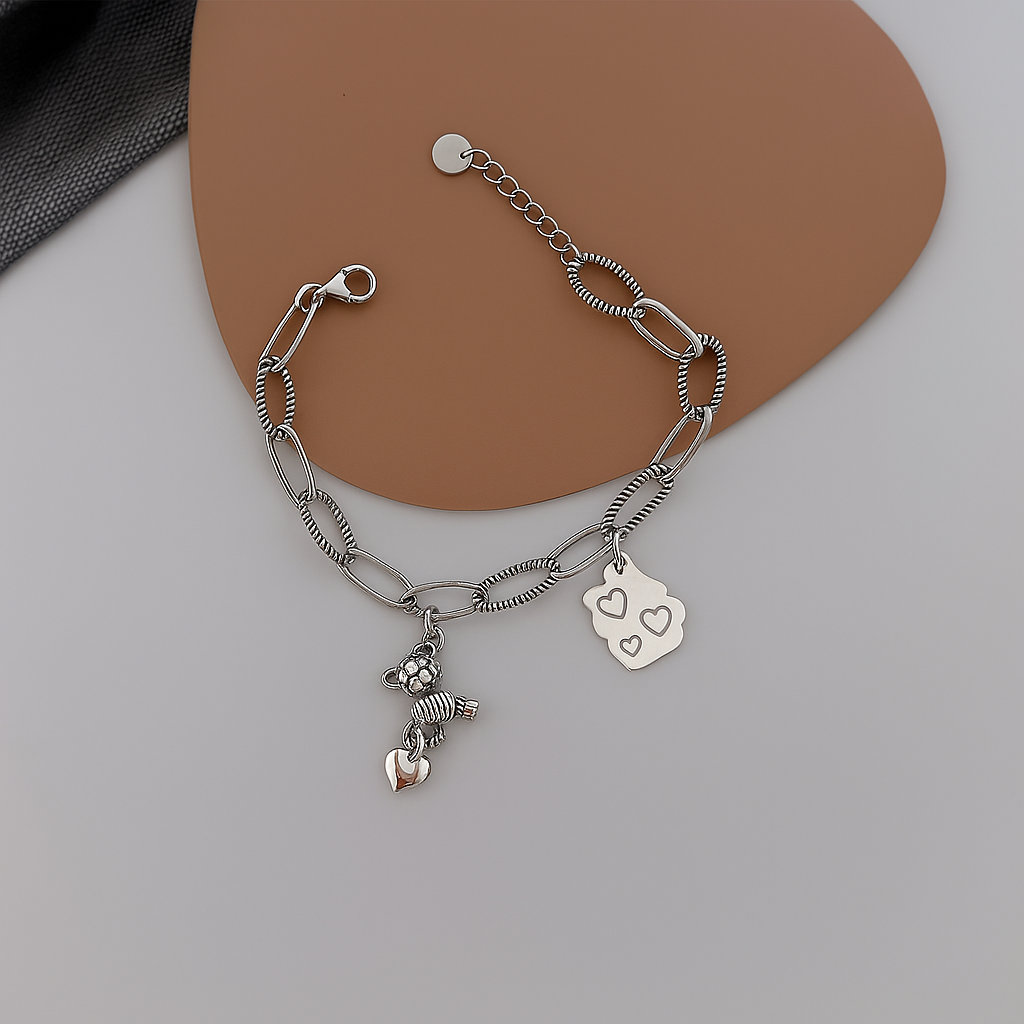 Con dijes de oso, corazón y medalla grabada, esta pulsera representa el amor familiar. Ideal como regalo para madres, hijas o abuelas. Una pieza emocional que celebra los lazos verdaderos.