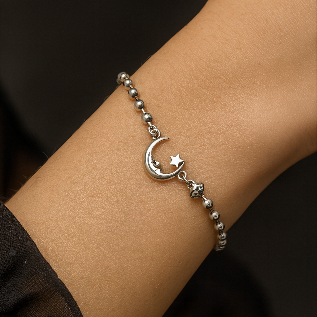Luna es una pulsera delicada que combina pequeñas cuentas con un colgante en forma de luna creciente. Es ideal para quienes viven con el corazón conectado a sus emociones, los sueños y la belleza tranquila de la noche.